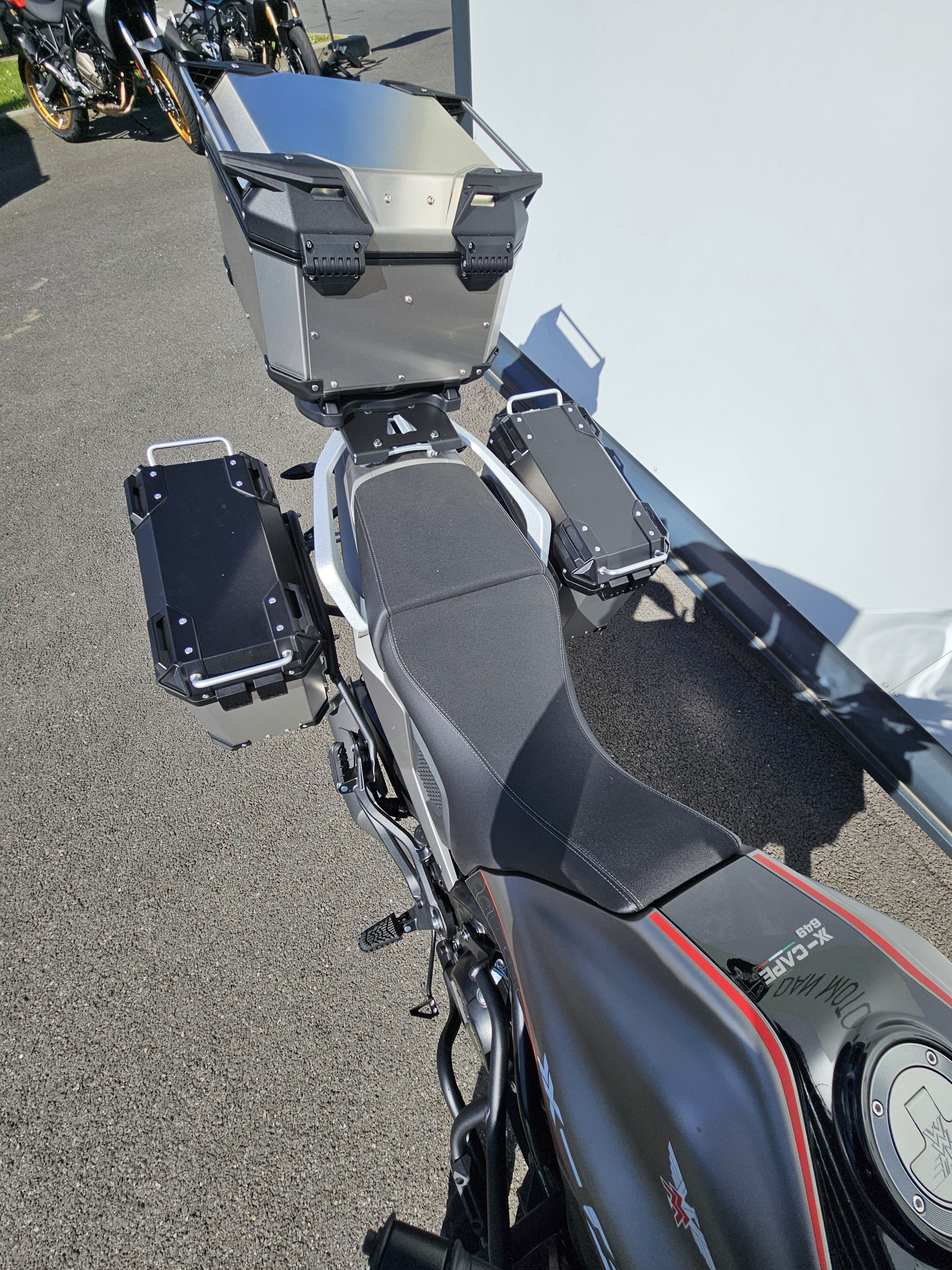 compatible Permis A2bulle haute GIVI, pare-carter GIVI, pare-mains GIVI,éclairage full Led,fourche inversée 50 mm ,durite de freins type aviation , pneus mixte ,écran TFT connecté, porte paquet avec poignées passager, livrée avec valises aluminium et top case aluminium