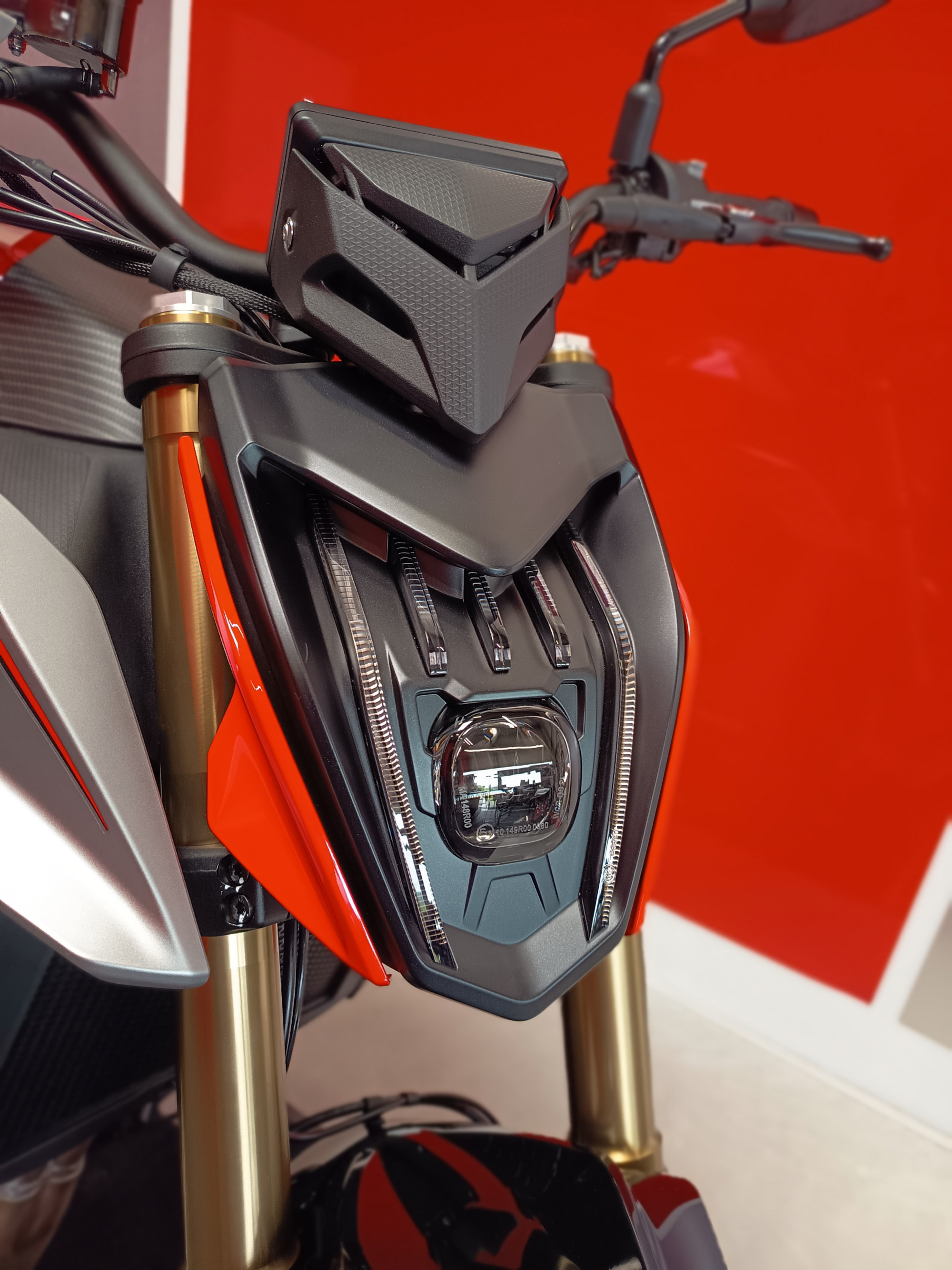 Traction Control, 2 modes de conduite , Fourche inversée réglable Marzocchi , Ecran TFT 5 pouces , commandes rétroéclairées , prises USB A et USB C
